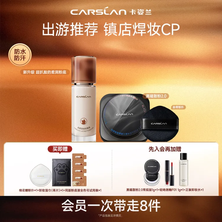 卡姿兰小混猫粉底液4.0+黑磁散粉遮瑕持久不脱妆防水控油干油皮